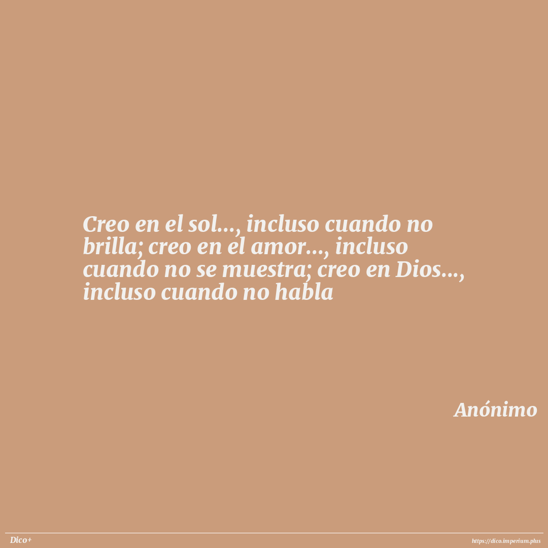 Creo en el sol..., incluso cuando no brilla; creo en el amor..., incluso cuando no se muestra; creo en Dios..., incluso cuando no habla