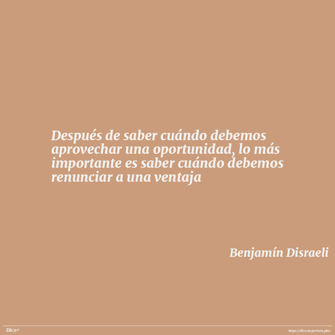 Después de saber cuándo debemos aprovechar una oportunidad, lo más importante es saber cuándo debemos renunciar a una ventaja