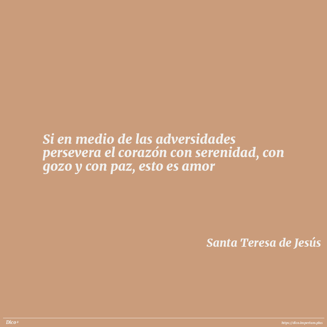 Si en medio de las adversidades persevera el corazón con serenidad, con gozo y con paz, esto es amor