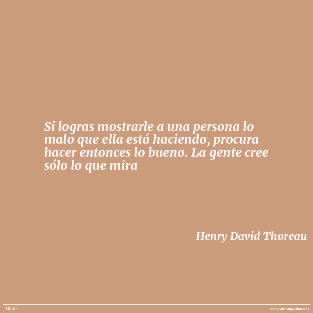 Si logras mostrarle a una persona lo malo que ella está haciendo, procura hacer entonces lo bueno. La gente cree sólo lo que mira