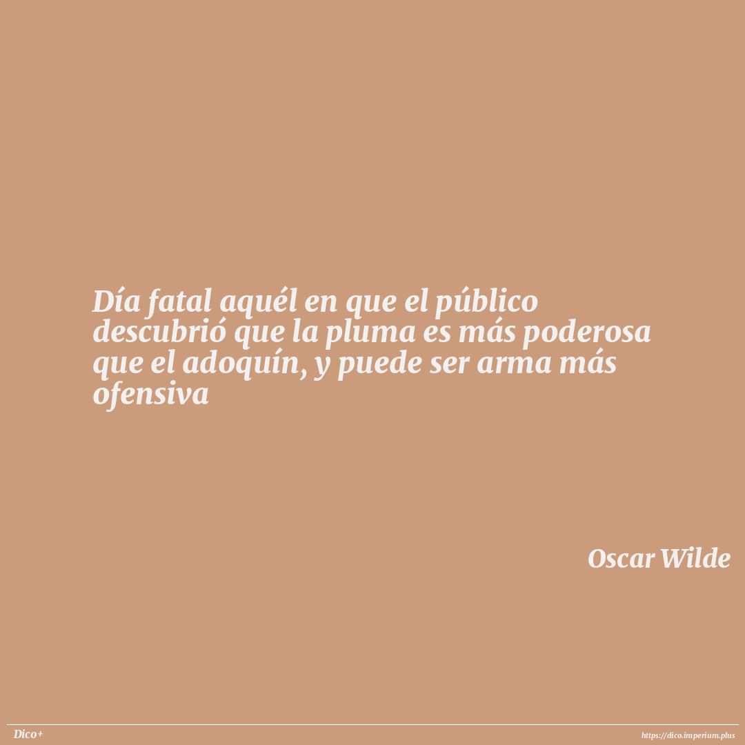 Día fatal aquél en que el público descubrió que la pluma es más poderosa que el adoquín, y puede ser arma más ofensiva