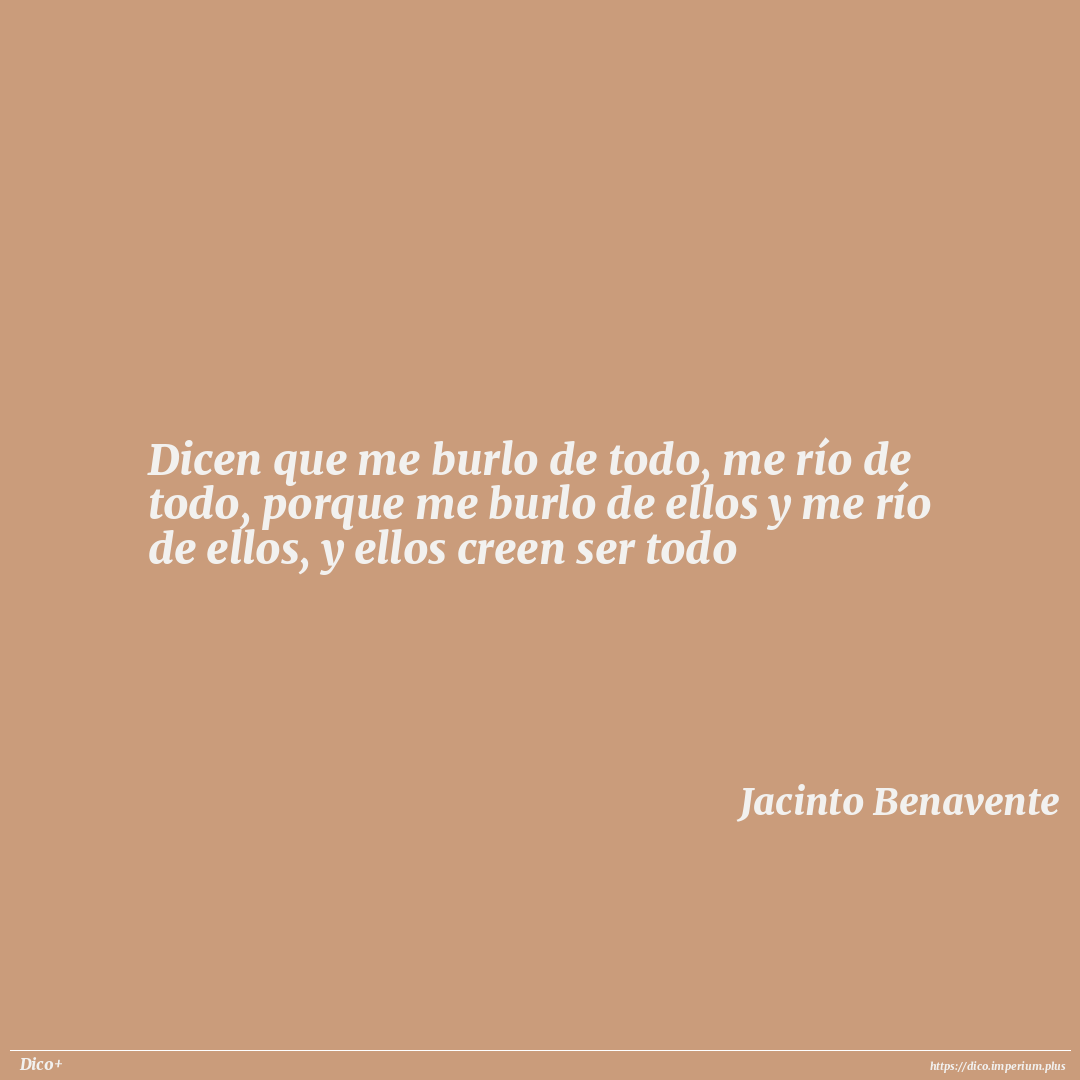 Dicen que me burlo de todo, me río de todo, porque me burlo de ellos y me río de ellos, y ellos creen ser todo