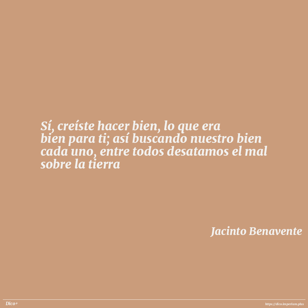 Sí, creíste hacer bien, lo que era bien para ti; así buscando nuestro bien cada uno, entre todos desatamos el mal sobre la tierra