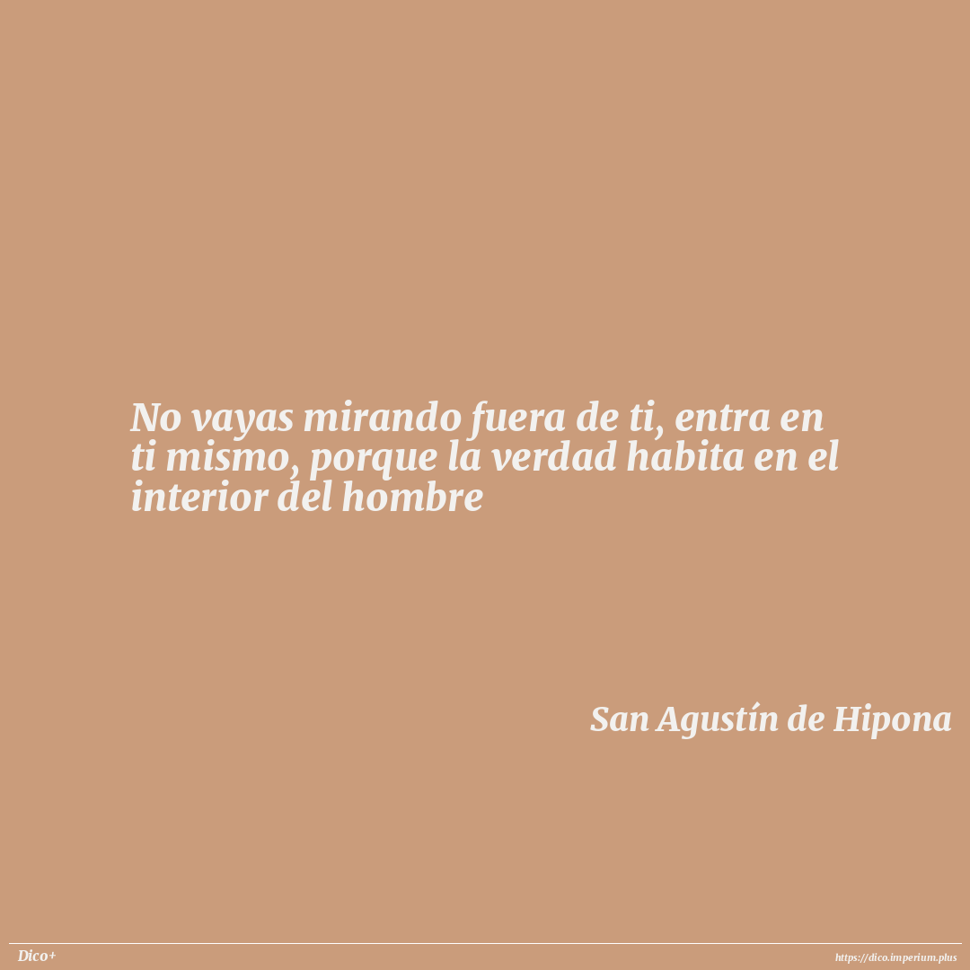 No vayas mirando fuera de ti, entra en ti mismo, porque la verdad habita en el interior del hombre