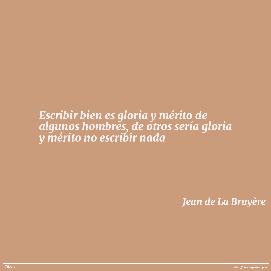Escribir bien es gloria y mérito de algunos hombres, de otros sería gloria y mérito no escribir nada