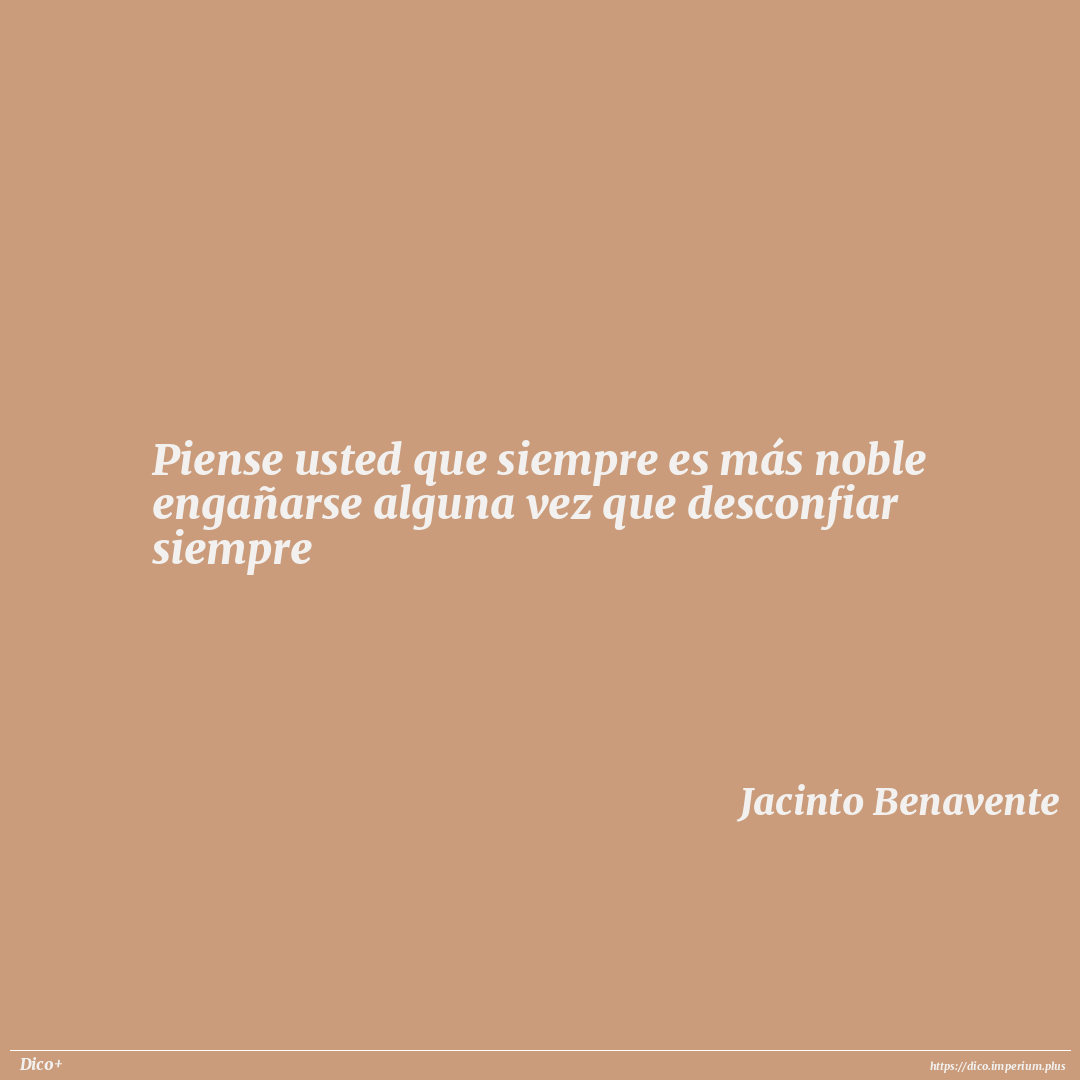 Piense usted que siempre es más noble engañarse alguna vez que desconfiar siempre