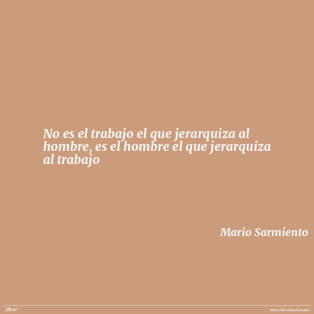 No es el trabajo el que jerarquiza al hombre, es el hombre el que jerarquiza al trabajo