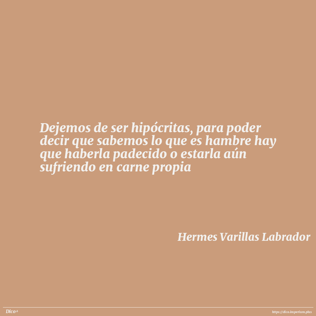 Dejemos de ser hipócritas, para poder decir que sabemos lo que es hambre hay que haberla padecido o estarla aún sufriendo en carne propia