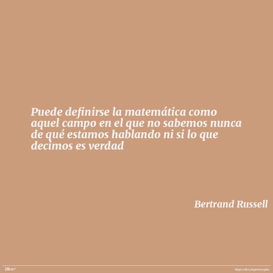 Puede definirse la matemática como aquel campo en el que no sabemos nunca de qué estamos hablando ni si lo que decimos es verdad