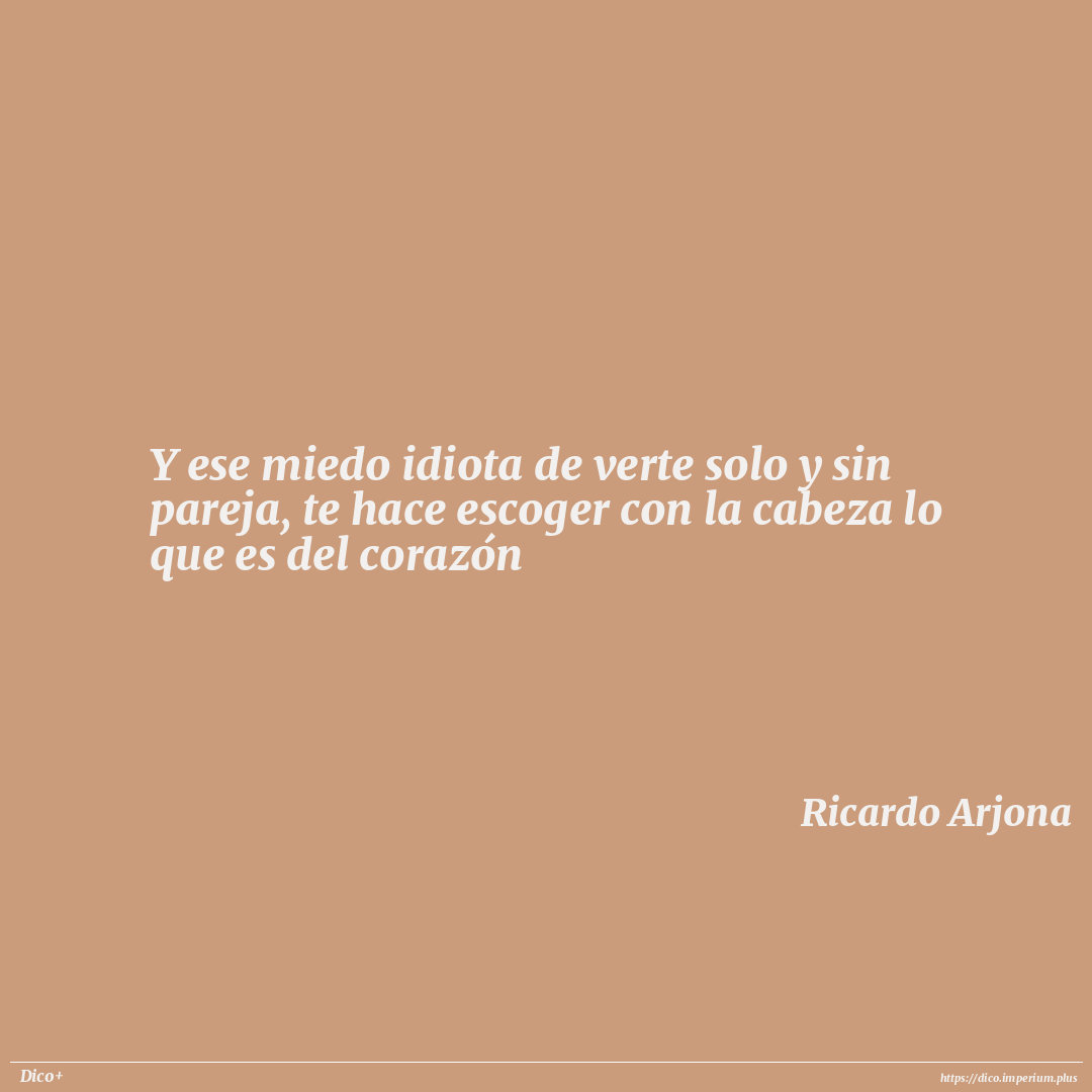 Y ese miedo idiota de verte solo y sin pareja, te hace escoger con la cabeza lo que es del corazón