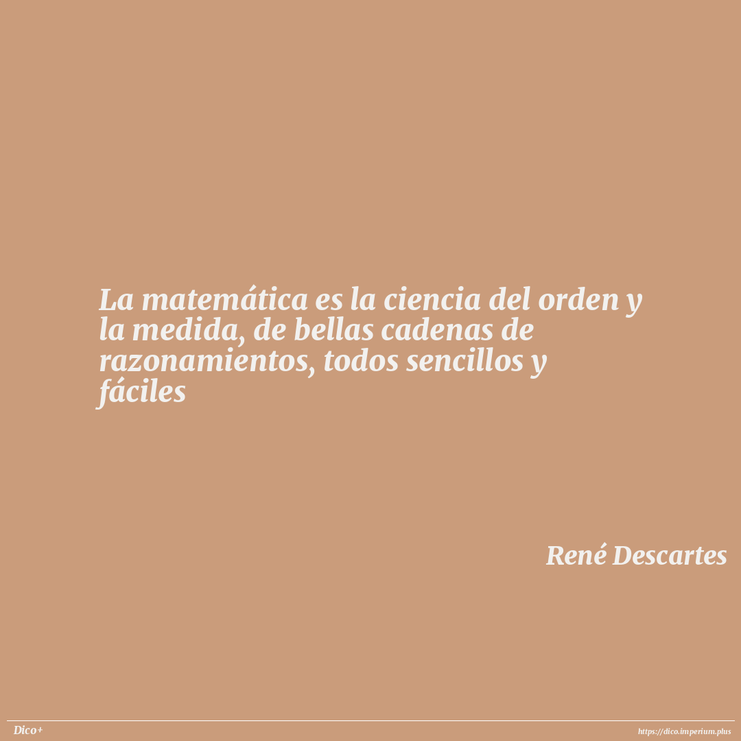 La matemática es la ciencia del orden y la medida, de bellas cadenas de razonamientos, todos sencillos y fáciles