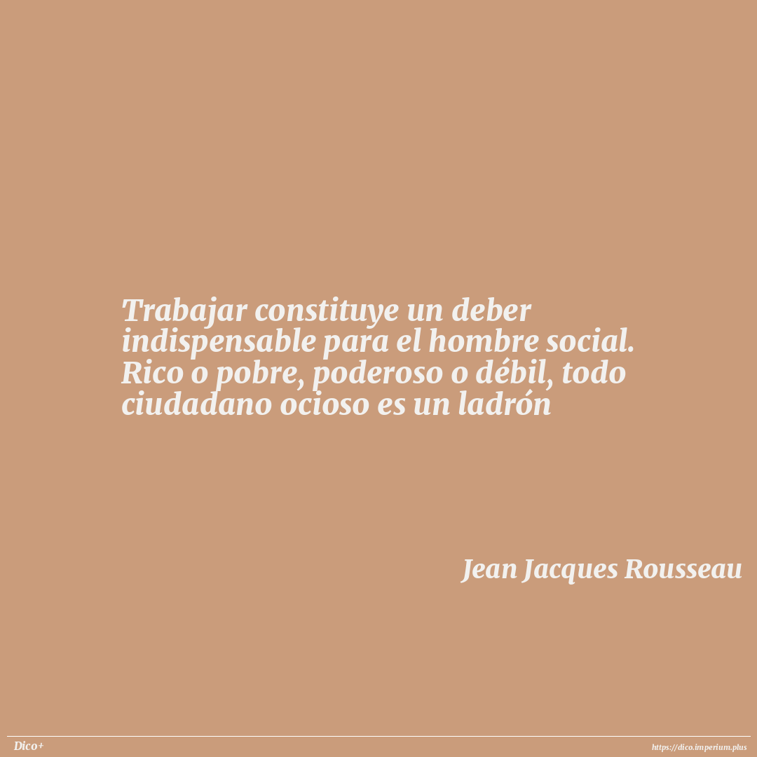 Trabajar constituye un deber indispensable para el hombre social. Rico o pobre, poderoso o débil, todo ciudadano ocioso es un ladrón