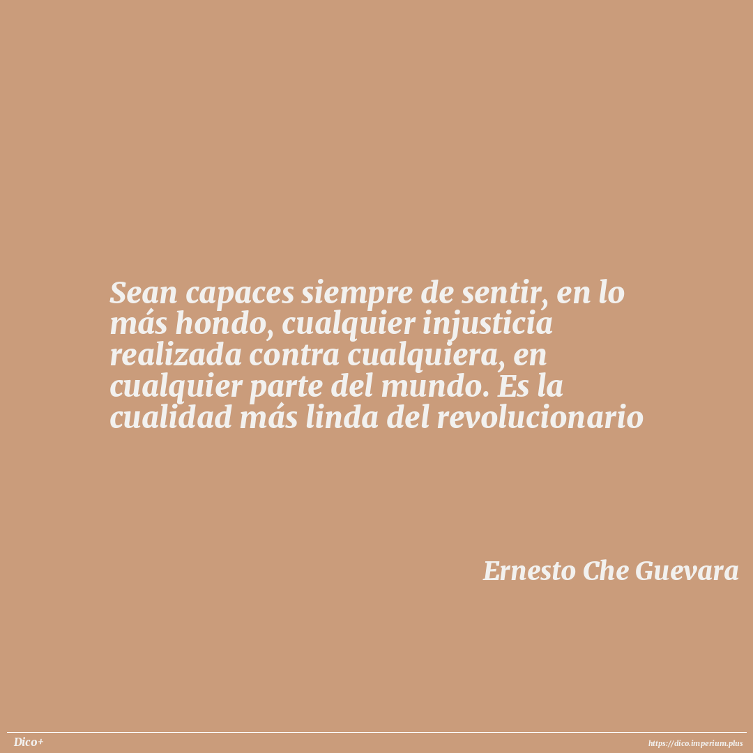 Sean capaces siempre de sentir, en lo más hondo, cualquier injusticia realizada contra cualquiera, en cualquier parte del mundo. Es la cualidad más linda del revolucionario