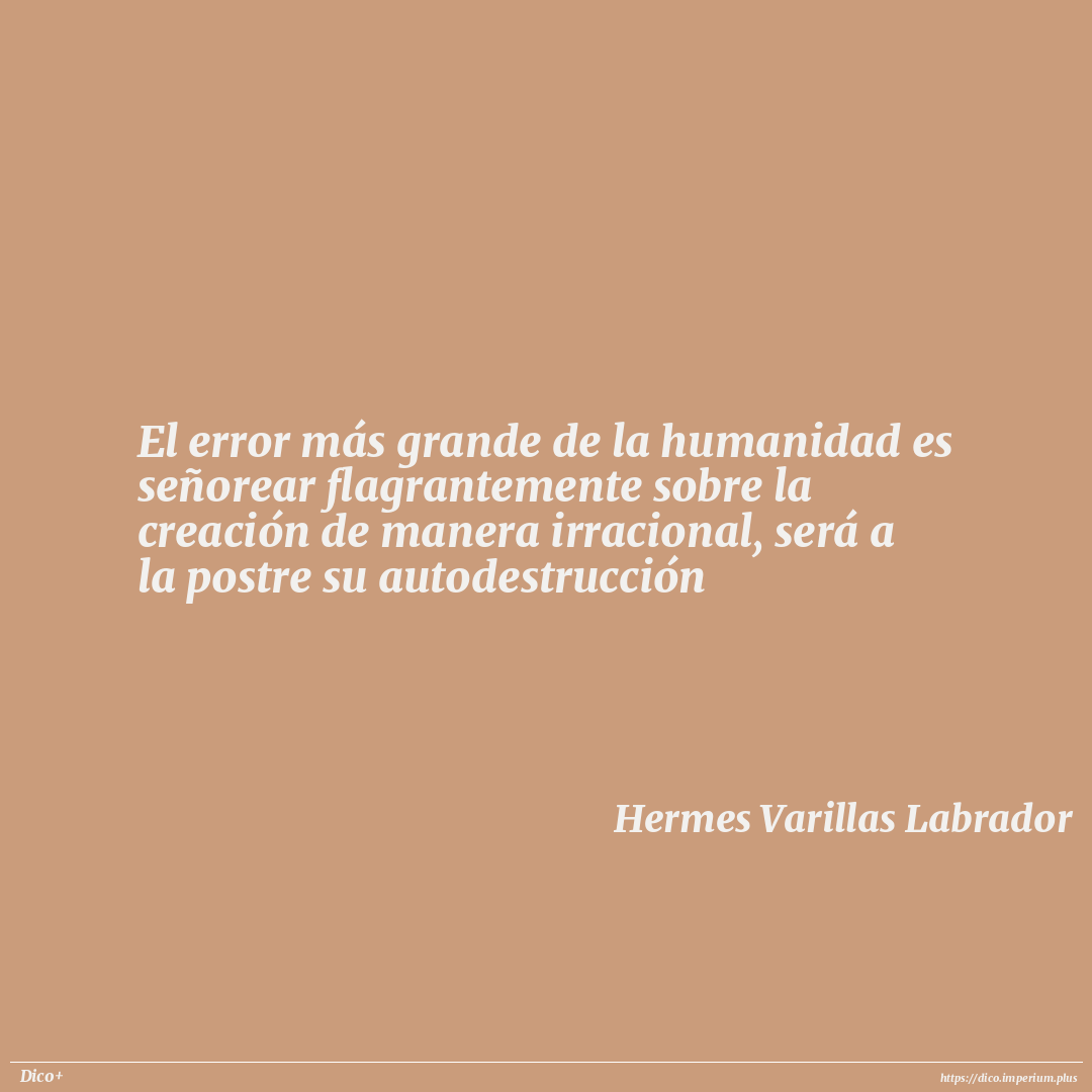 El error más grande de la humanidad es señorear flagrantemente sobre la creación de manera irracional, será a la postre su autodestrucción