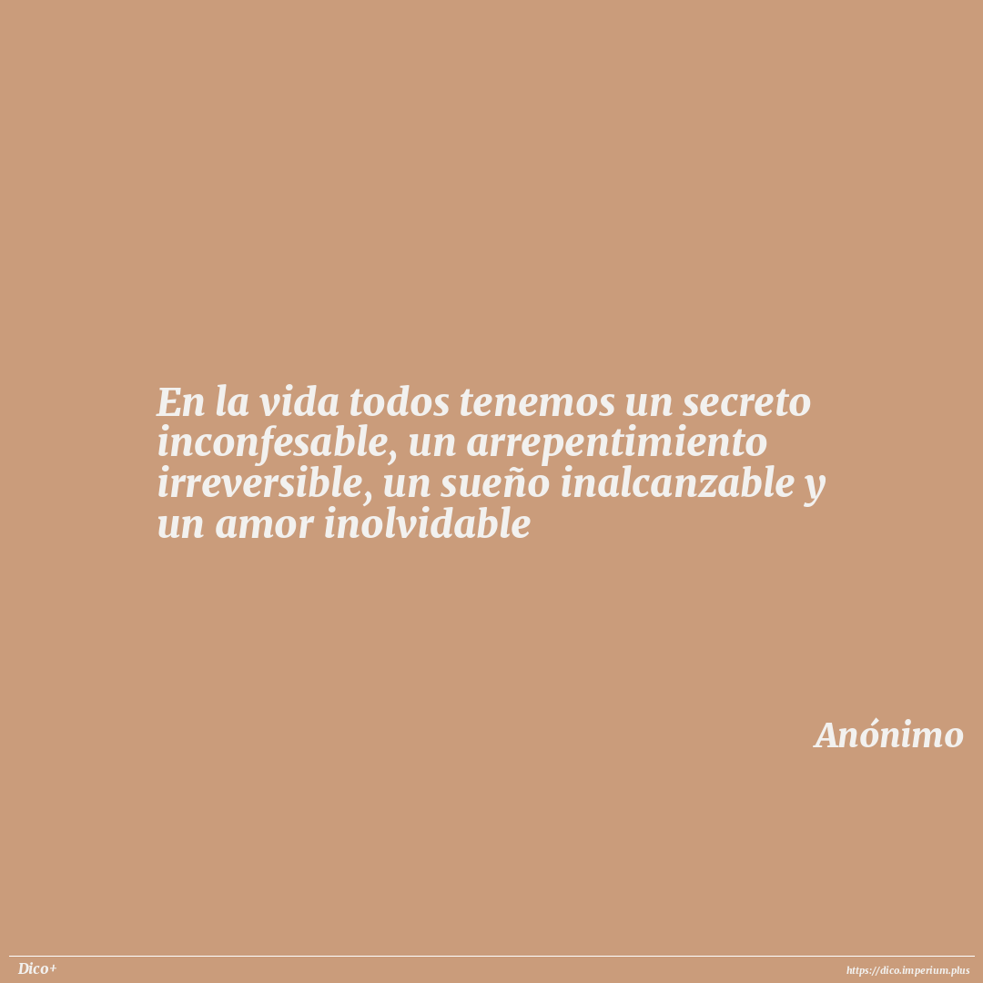 En la vida todos tenemos un secreto inconfesable, un arrepentimiento irreversible, un sueño inalcanzable y un amor inolvidable