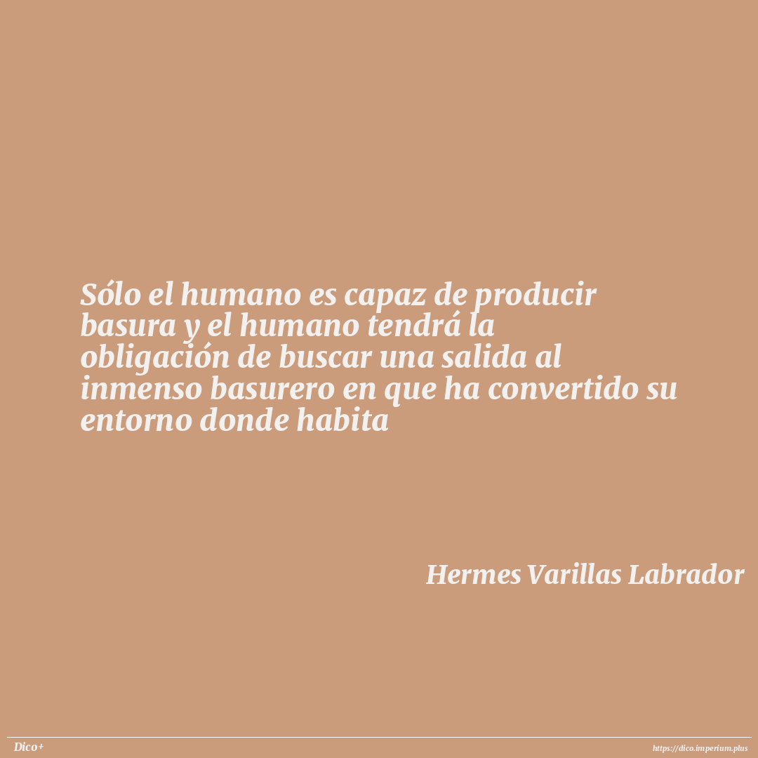 Sólo el humano es capaz de producir basura y el humano tendrá la obligación de buscar una salida al inmenso basurero en que ha convertido su entorno donde habita