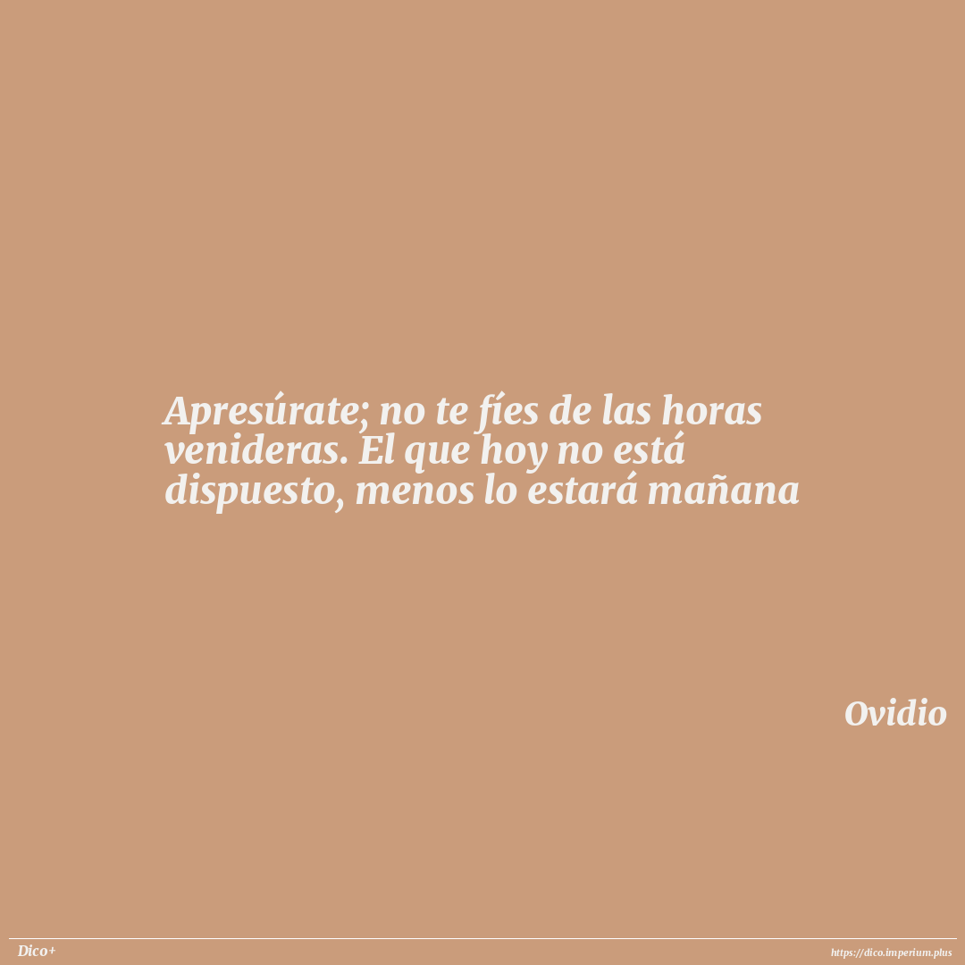 Apresúrate; no te fíes de las horas venideras. El que hoy no está dispuesto, menos lo estará mañana