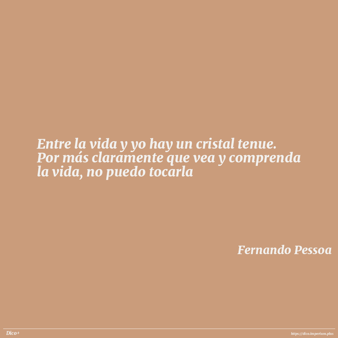 Entre la vida y yo hay un cristal tenue. Por más claramente que vea y comprenda la vida, no puedo tocarla