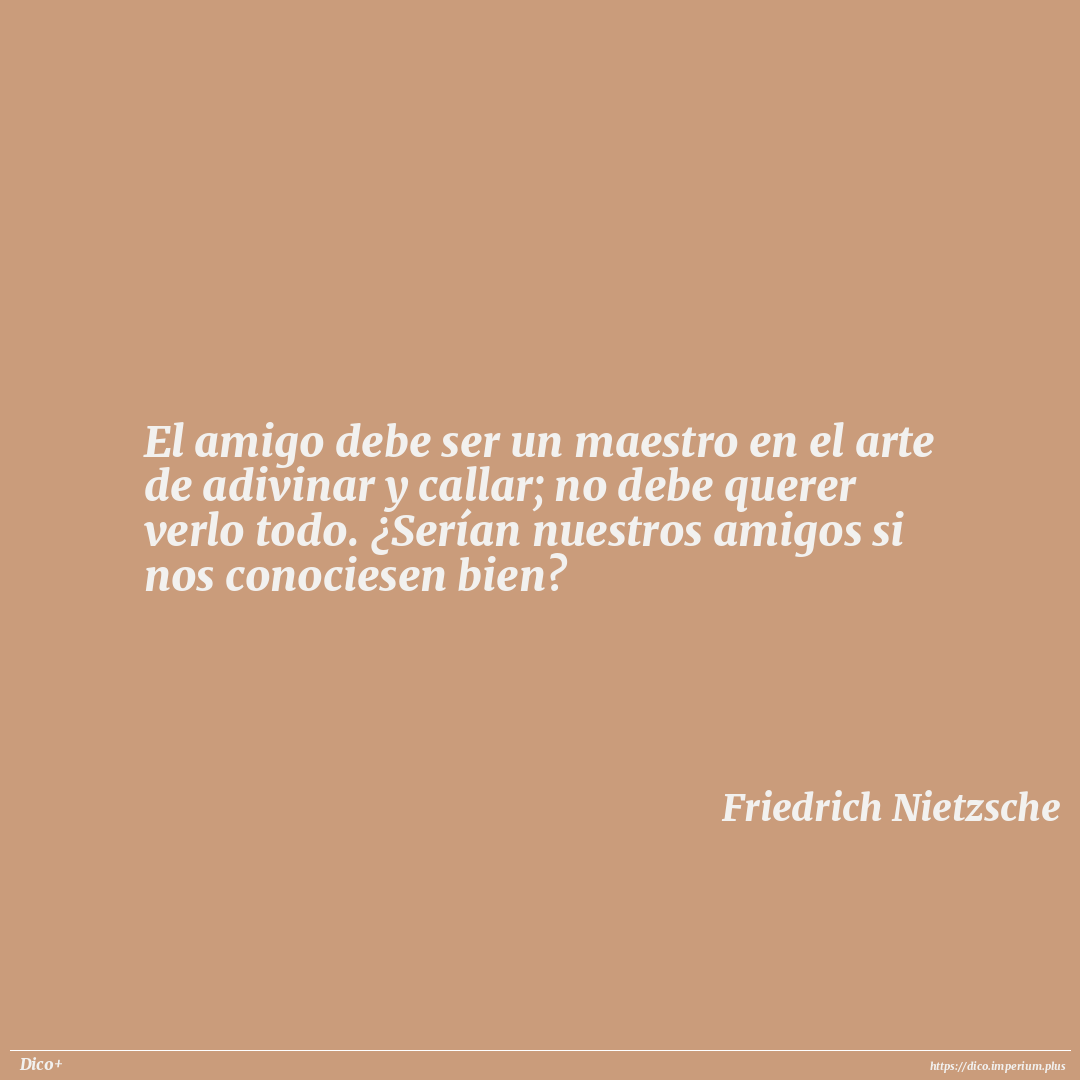 El amigo debe ser un maestro en el arte de adivinar y callar; no debe querer verlo todo. ¿Serían nuestros amigos si nos conociesen bien?
