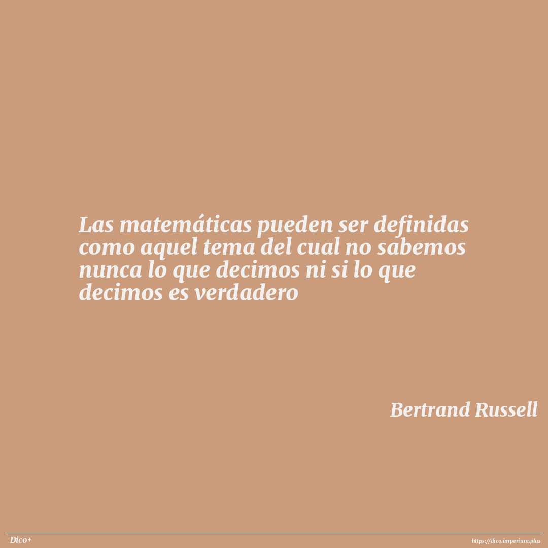 Las matemáticas pueden ser definidas como aquel tema del cual no sabemos nunca lo que decimos ni si lo que decimos es verdadero