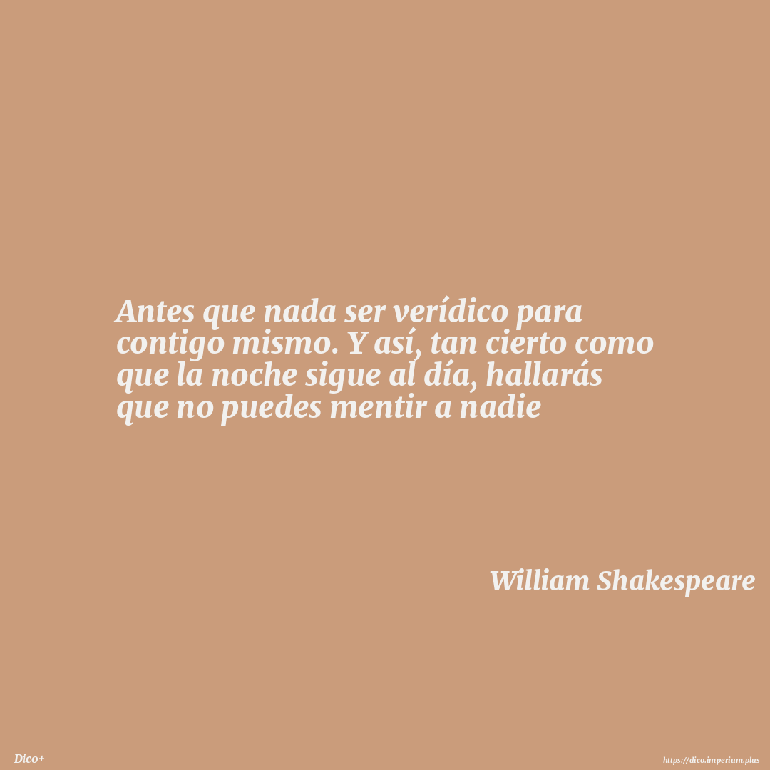 Antes que nada ser verídico para contigo mismo. Y así, tan cierto como que la noche sigue al día, hallarás que no puedes mentir a nadie