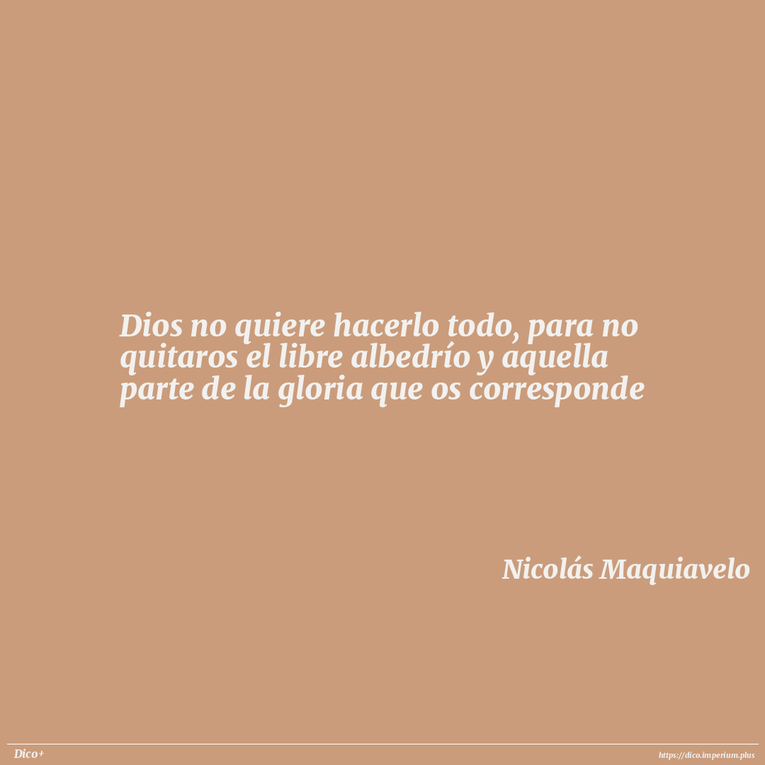 Dios no quiere hacerlo todo, para no quitaros el libre albedrío y aquella parte de la gloria que os corresponde