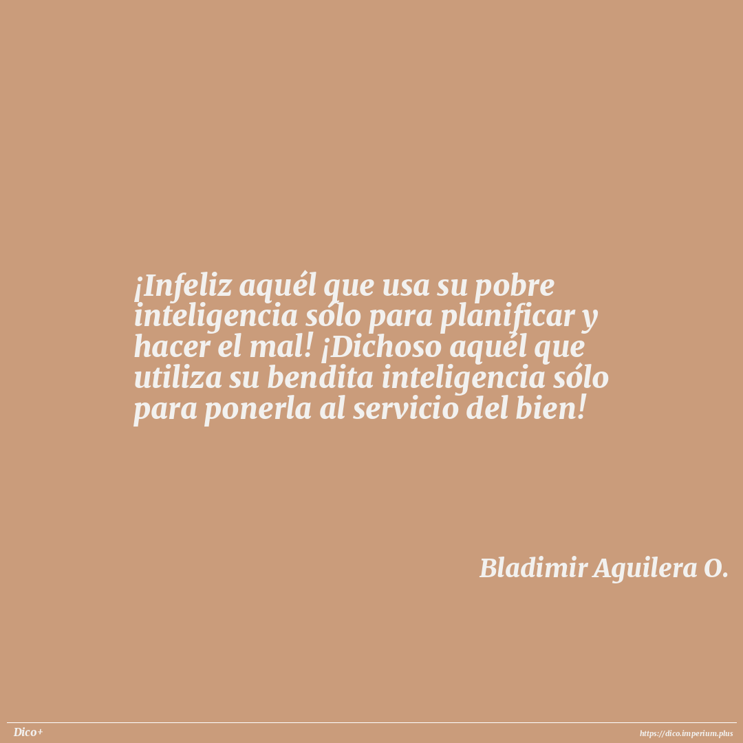 ¡Infeliz aquél que usa su pobre inteligencia sólo para planificar y hacer el mal! ¡Dichoso aquél que utiliza su bendita inteligencia sólo para ponerla al servicio del bien!