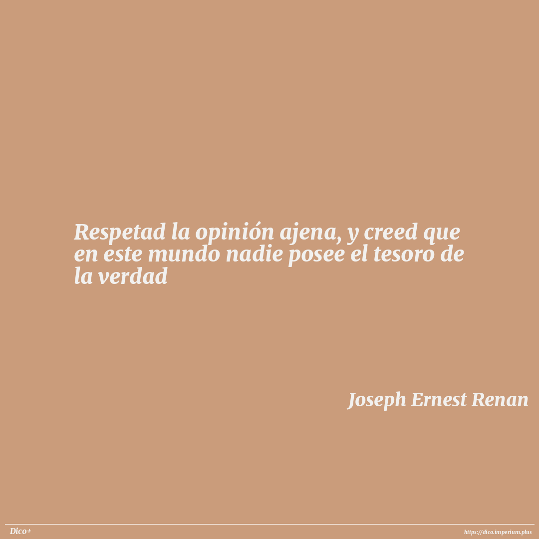 Respetad la opinión ajena, y creed que en este mundo nadie posee el tesoro de la verdad