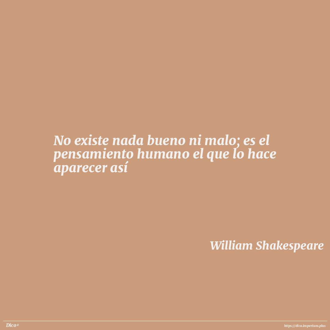 No existe nada bueno ni malo; es el pensamiento humano el que lo hace aparecer así
