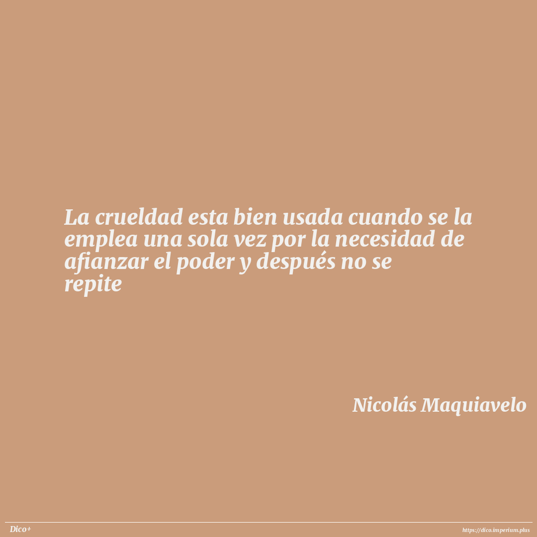 La crueldad esta bien usada cuando se la emplea una sola vez por la necesidad de afianzar el poder y después no se repite
