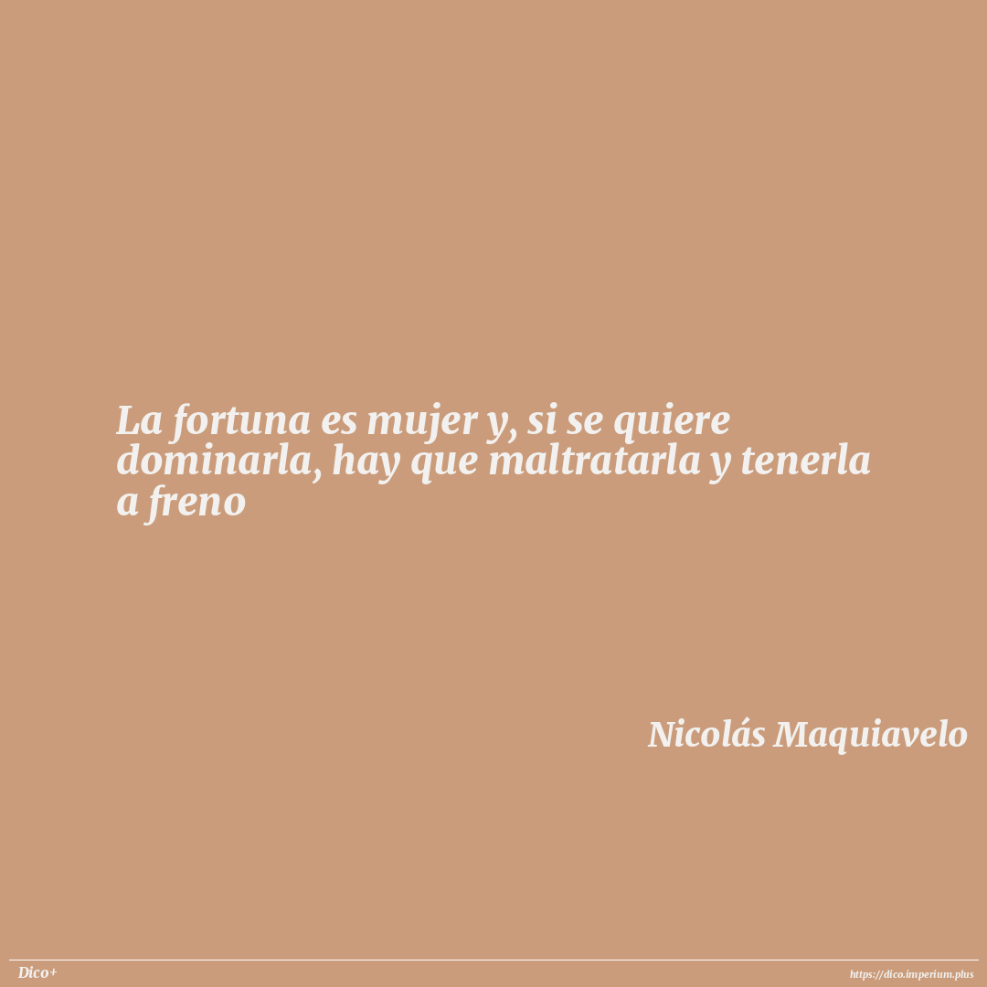 La fortuna es mujer y, si se quiere dominarla, hay que maltratarla y tenerla a freno