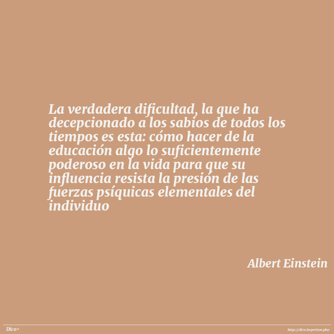 La verdadera dificultad, la que ha decepcionado a los sabios de todos los tiempos es esta: cómo hacer de la educación algo lo suficientemente poderoso en la vida para que su influencia resista la presión de las fuerzas psíquicas elementales del individuo
