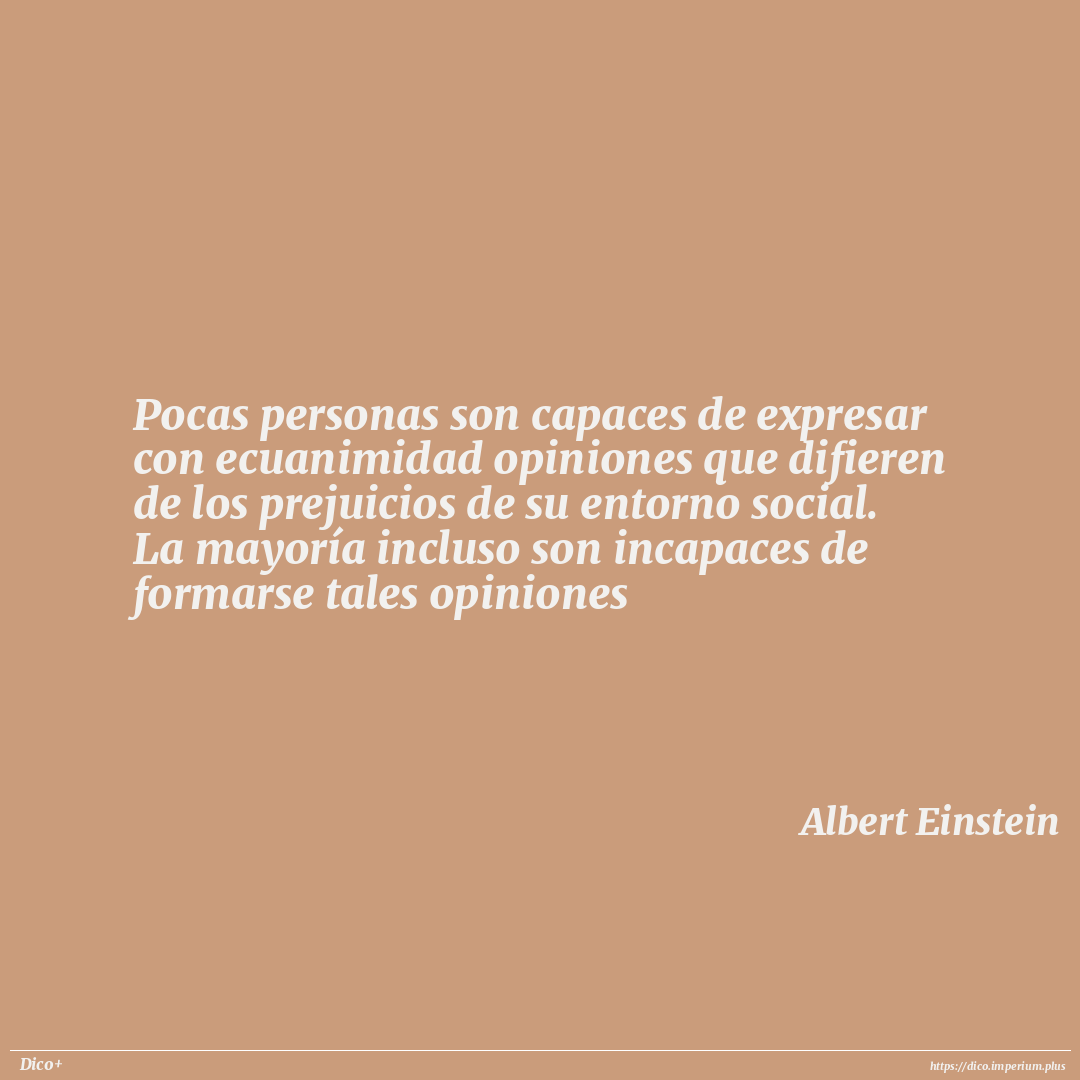 Pocas personas son capaces de expresar con ecuanimidad opiniones que difieren de los prejuicios de su entorno social. La mayoría incluso son incapaces de formarse tales opiniones