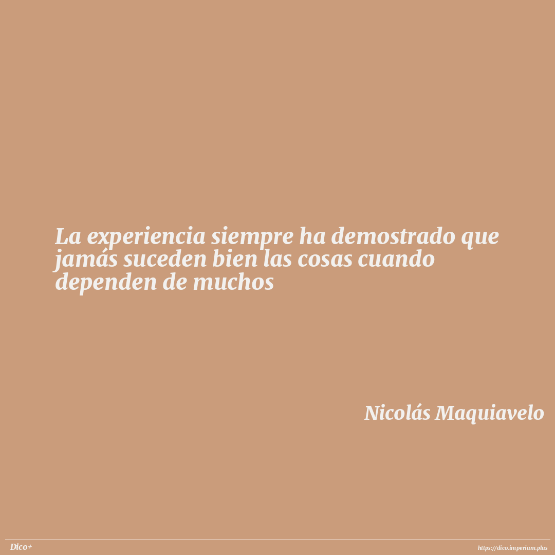 La experiencia siempre ha demostrado que jamás suceden bien las cosas cuando dependen de muchos