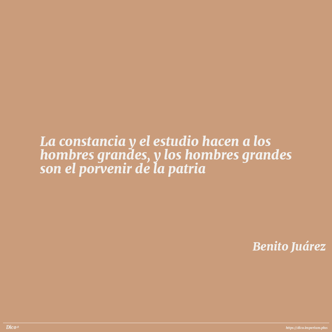 La constancia y el estudio hacen a los hombres grandes, y los hombres grandes son el porvenir de la patria