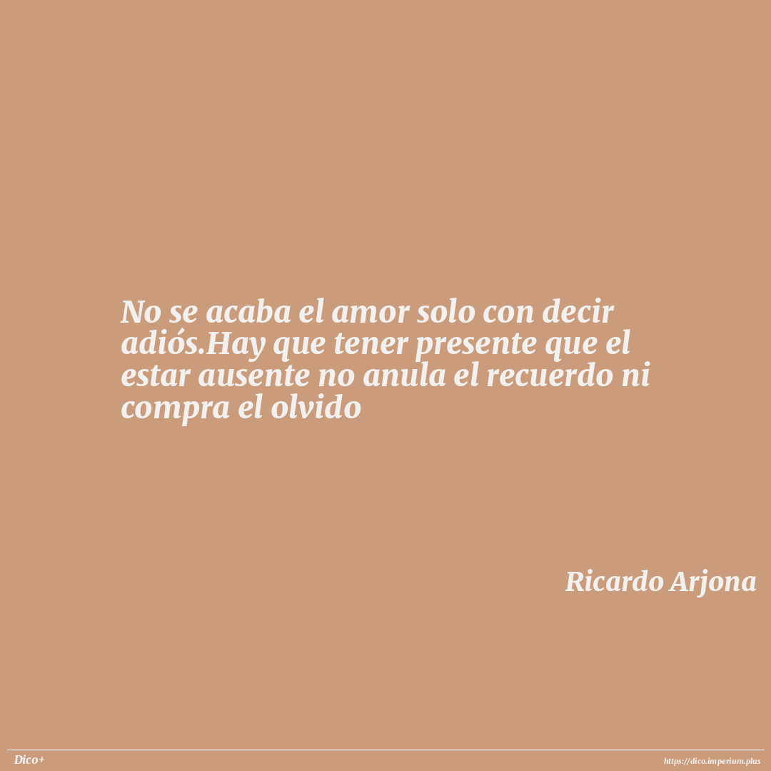 No se acaba el amor solo con decir adiós.Hay que tener presente que el estar ausente no anula el recuerdo ni compra el olvido