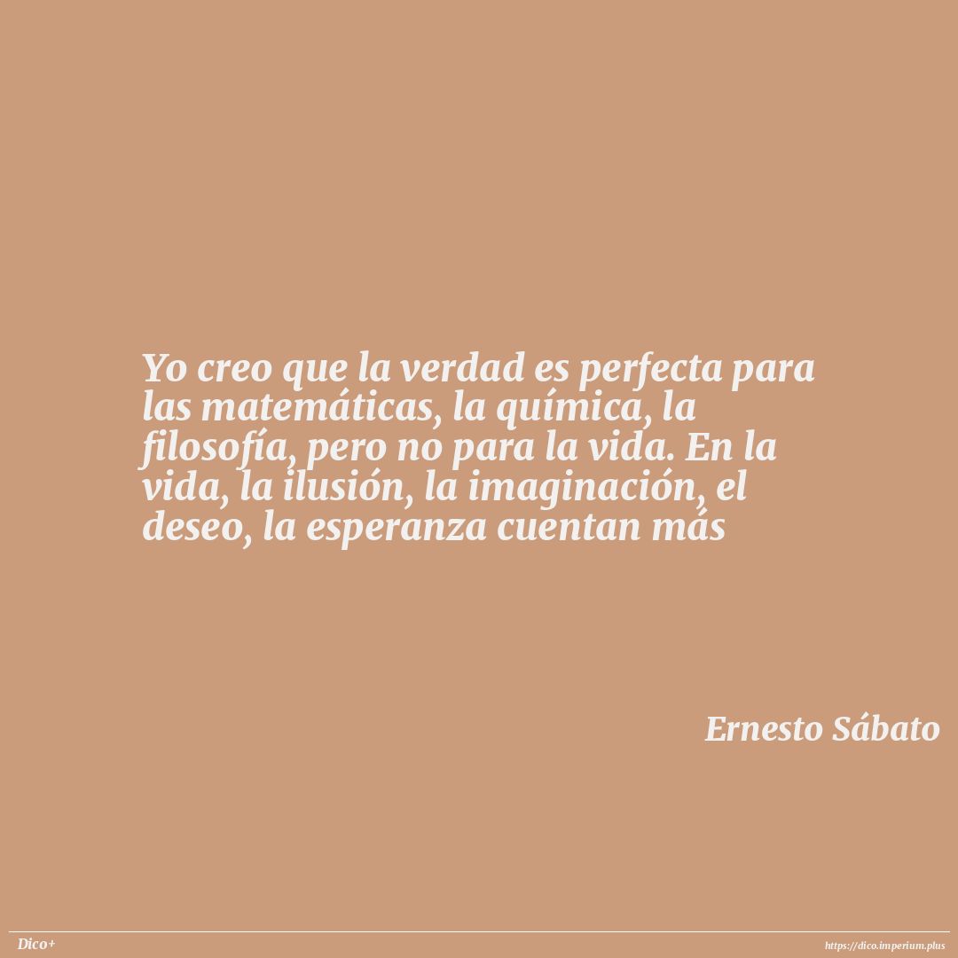 Yo creo que la verdad es perfecta para las matemáticas, la química, la filosofía, pero no para la vida. En la vida, la ilusión, la imaginación, el deseo, la esperanza cuentan más