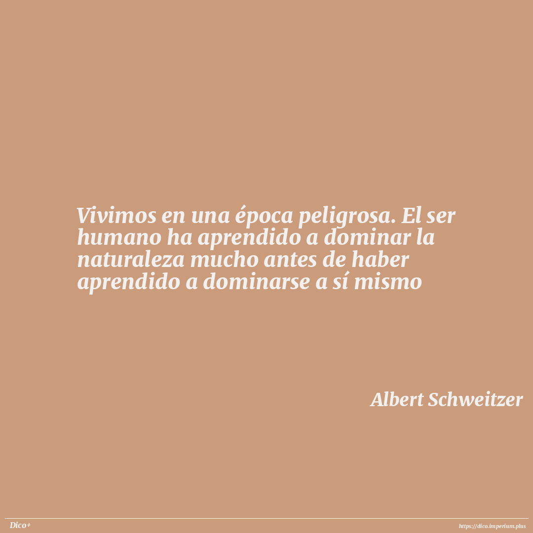 Vivimos en una época peligrosa. El ser humano ha aprendido a dominar la naturaleza mucho antes de haber aprendido a dominarse a sí mismo