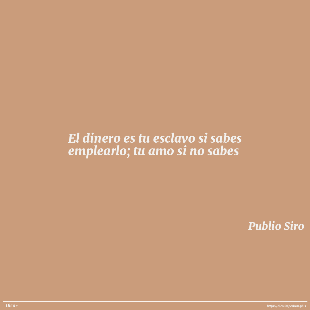 El dinero es tu esclavo si sabes emplearlo; tu amo si no sabes