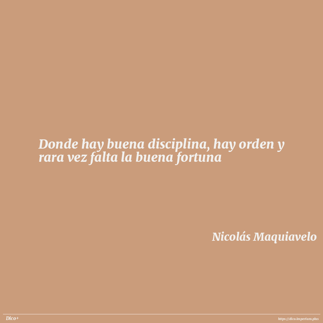 Donde hay buena disciplina, hay orden y rara vez falta la buena fortuna