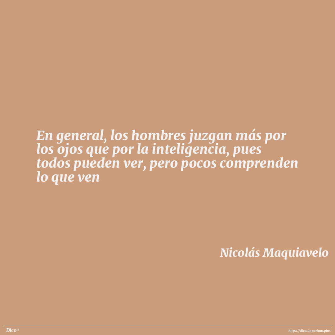 En general, los hombres juzgan más por los ojos que por la inteligencia, pues todos pueden ver, pero pocos comprenden lo que ven