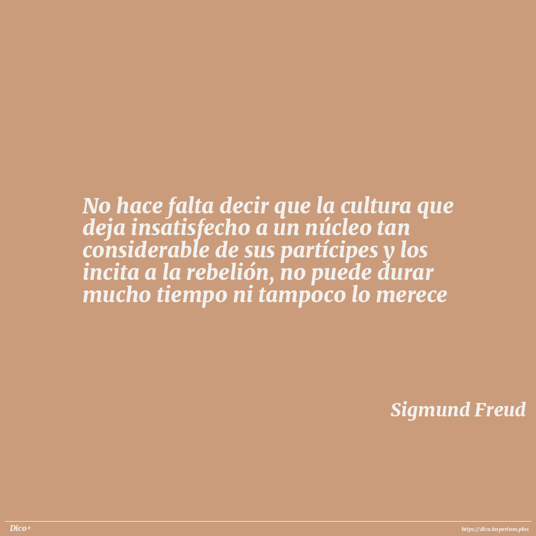 No hace falta decir que la cultura que deja insatisfecho a un núcleo tan considerable de sus partícipes y los incita a la rebelión, no puede durar mucho tiempo ni tampoco lo merece