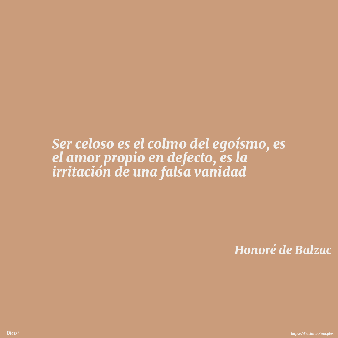 Ser celoso es el colmo del egoísmo, es el amor propio en defecto, es la irritación de una falsa vanidad