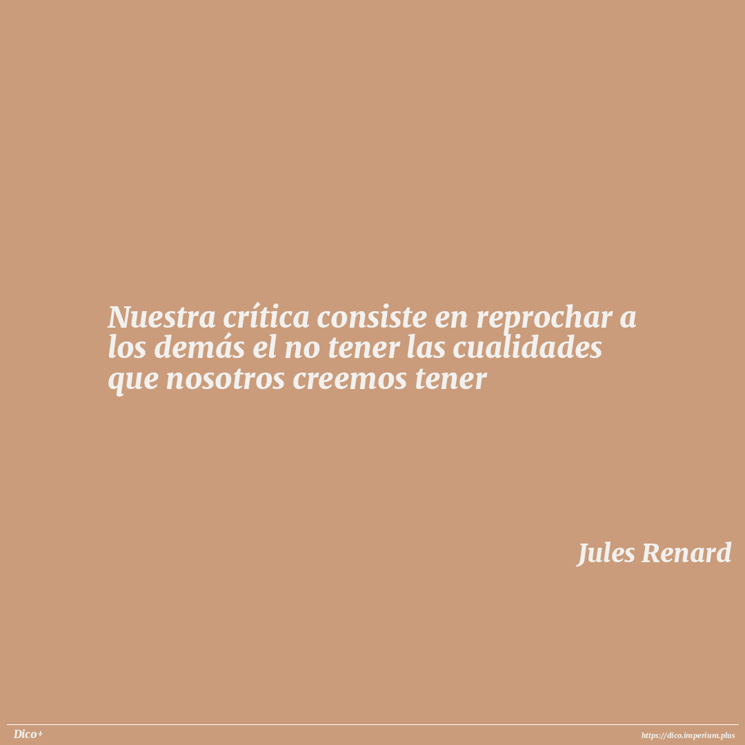 Nuestra crítica consiste en reprochar a los demás el no tener las cualidades que nosotros creemos tener