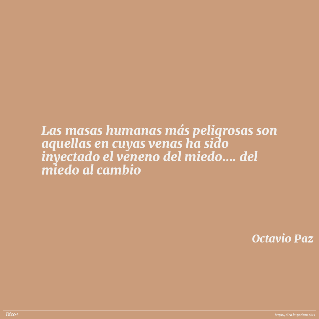 Las masas humanas más peligrosas son aquellas en cuyas venas ha sido inyectado el veneno del miedo.... del miedo al cambio