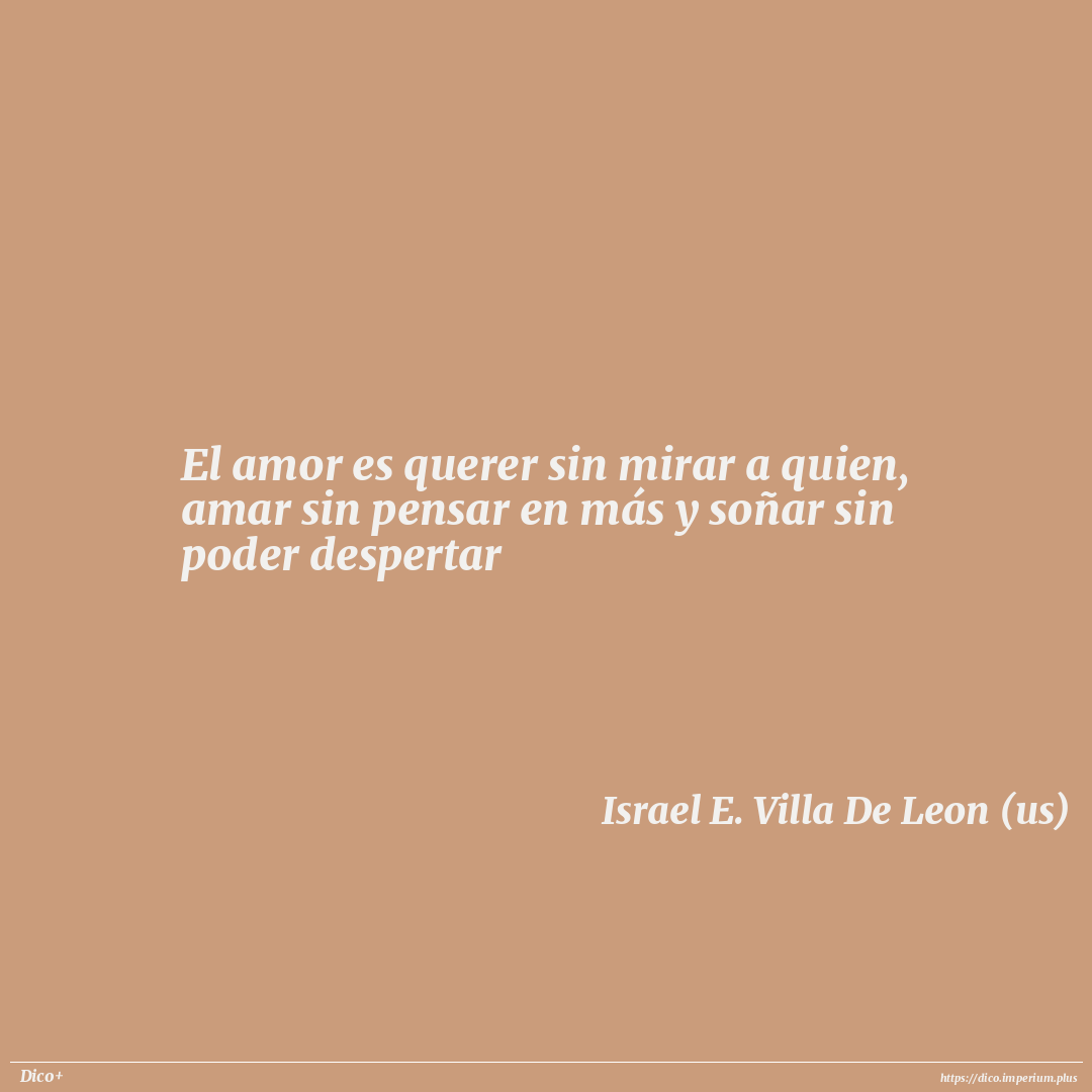 El amor es querer sin mirar a quien, amar sin pensar en más y soñar sin poder despertar