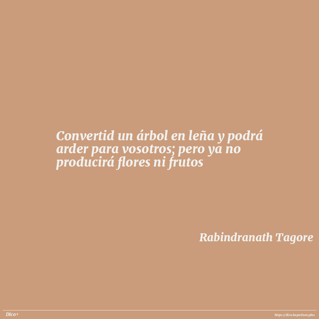 Convertid un árbol en leña y podrá arder para vosotros; pero ya no producirá flores ni frutos