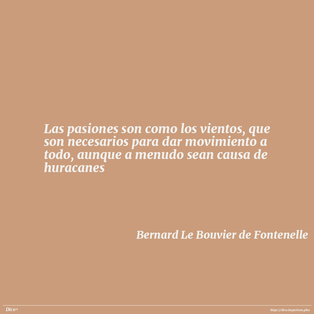 Las pasiones son como los vientos, que son necesarios para dar movimiento a todo, aunque a menudo sean causa de huracanes