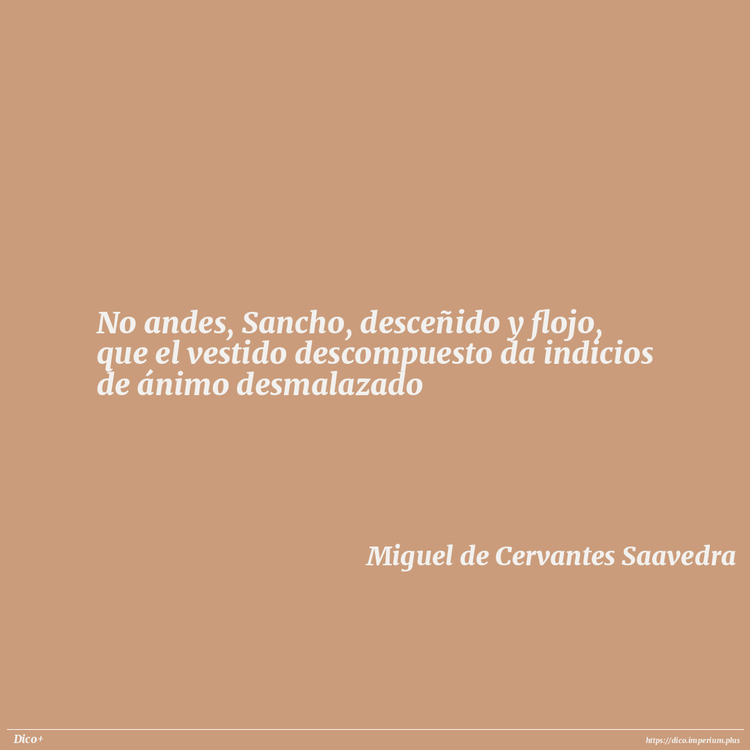No andes, Sancho, desceñido y flojo, que el vestido descompuesto da indicios de ánimo desmalazado
