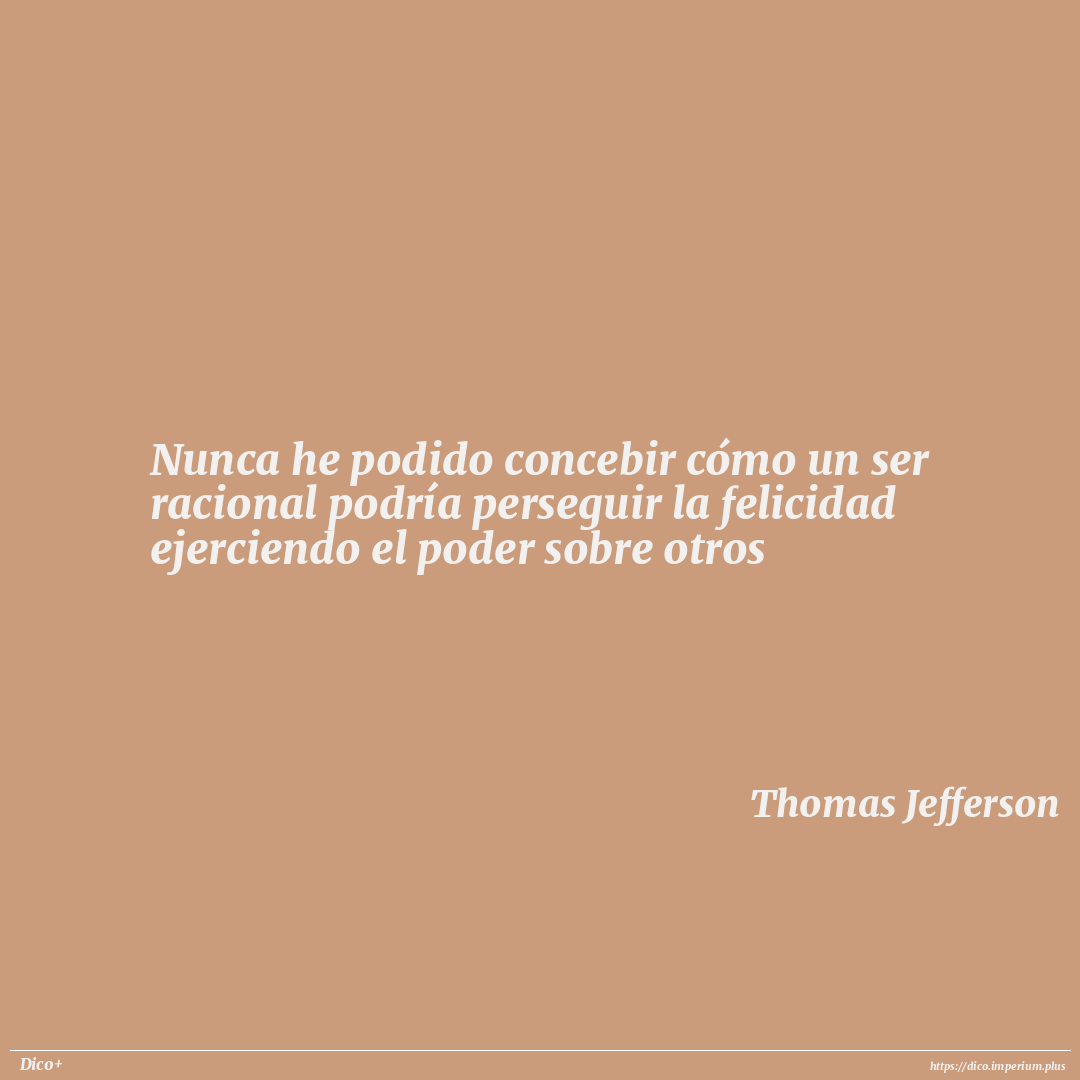 Nunca he podido concebir cómo un ser racional podría perseguir la felicidad ejerciendo el poder sobre otros